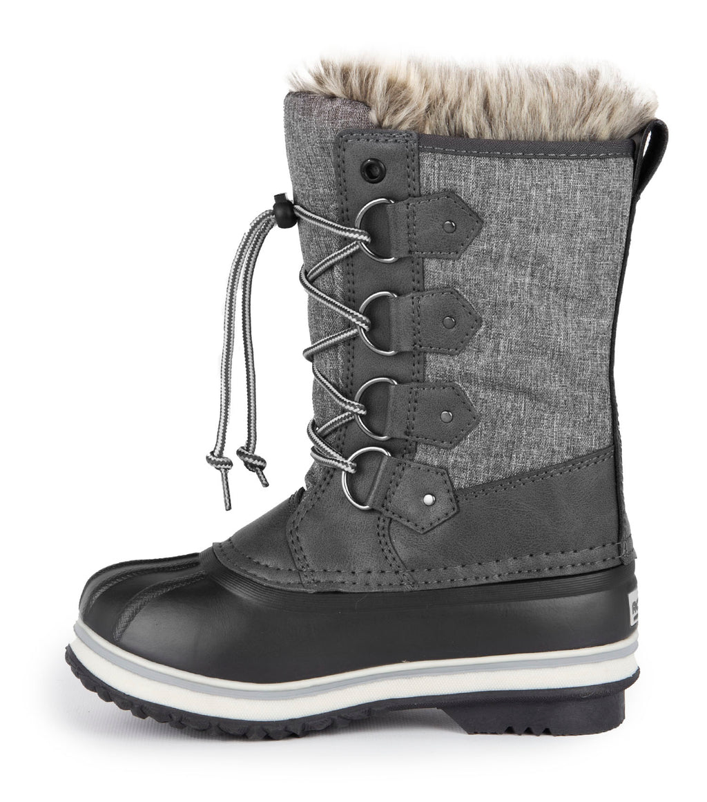 Cette botte d’hiver pour enfants en cuir synthétique traité et nylon hydrofuge aux coutures sellés H2O Seal est parfaite pour garder les pieds des jeunes au chaud et au sec tout l’hiver.